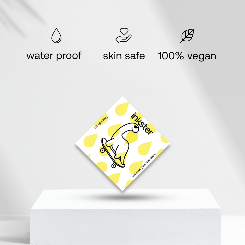 Since your Inkster tattoo is absorbed into the first layer of skin, water cannot harm your tattoo.