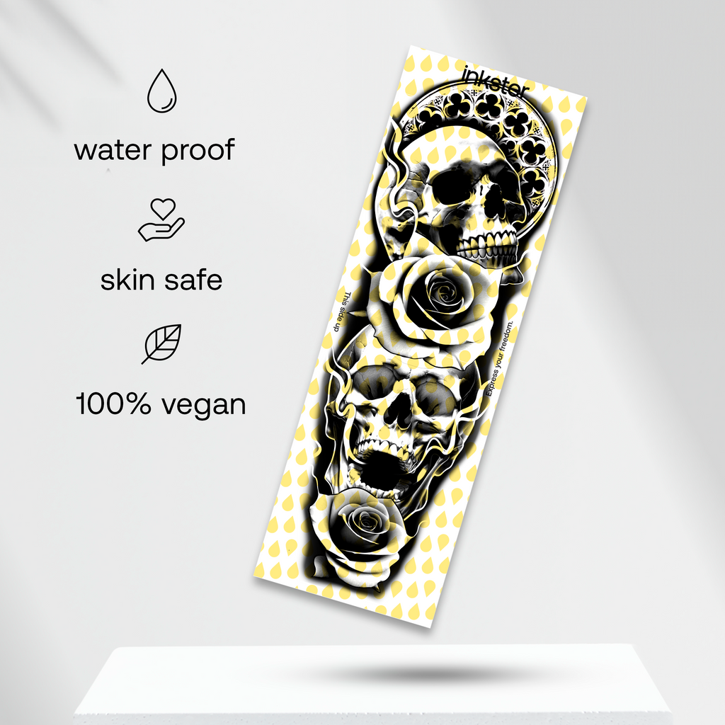 Pour ton tatouage révolutionnaire de 2 semaines d'Inkster, tout ce dont tu as besoin est le tatouage, qui sera livré à ta porte. Les instructions sur la façon d'appliquer le tatouage se trouvent sur l'emballage du tatouage. Ne t'inquiète pas, c'est très simple, rien ne peut mal tourner !