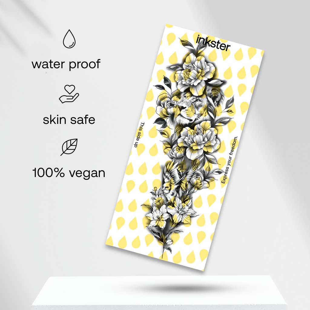 Pour ton tatouage révolutionnaire de 2 semaines d'Inkster, tout ce dont tu as besoin est le tatouage, qui sera livré à ta porte. Les instructions sur la façon d'appliquer le tatouage se trouvent sur l'emballage du tatouage. Ne t'inquiète pas, c'est très simple, rien ne peut mal tourner !