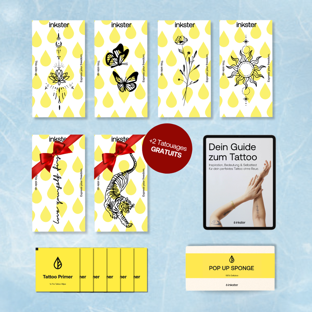 Notre encre naturelle Inkster pénètre dans la première couche de peau et réagit avec les composés naturels présents dans votre peau et dans l'air, la rendant noire ou bleue.