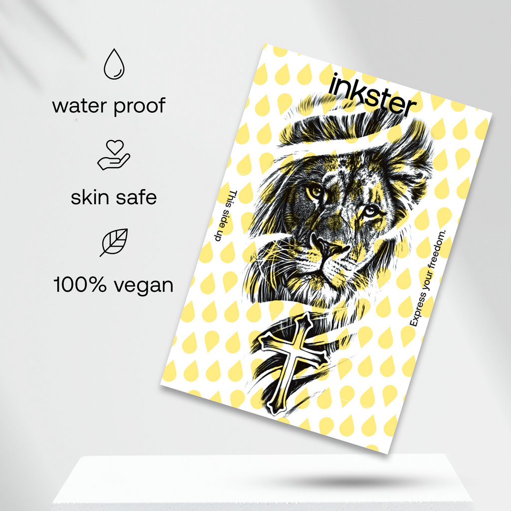 Pour ton tatouage révolutionnaire de 2 semaines d'Inkster, tout ce dont tu as besoin est le tatouage, qui sera livré à ta porte. Les instructions sur la façon d'appliquer le tatouage se trouvent sur l'emballage du tatouage. Ne t'inquiète pas, c'est très simple, rien ne peut mal tourner !